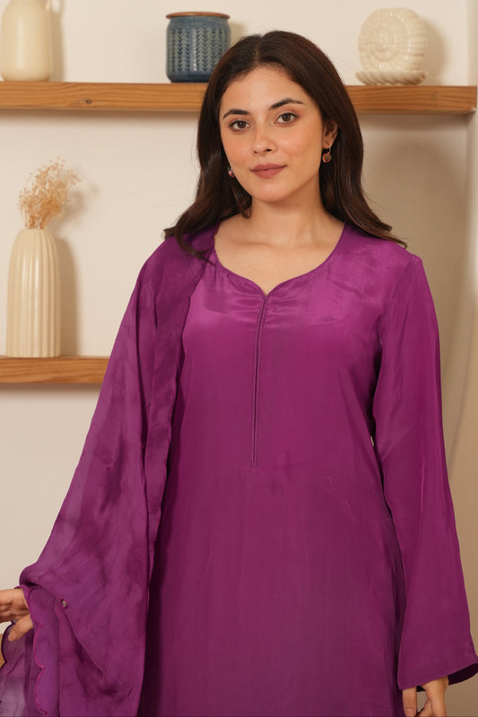 Purple Silk Shibori Mirror Work Staright Suit Set