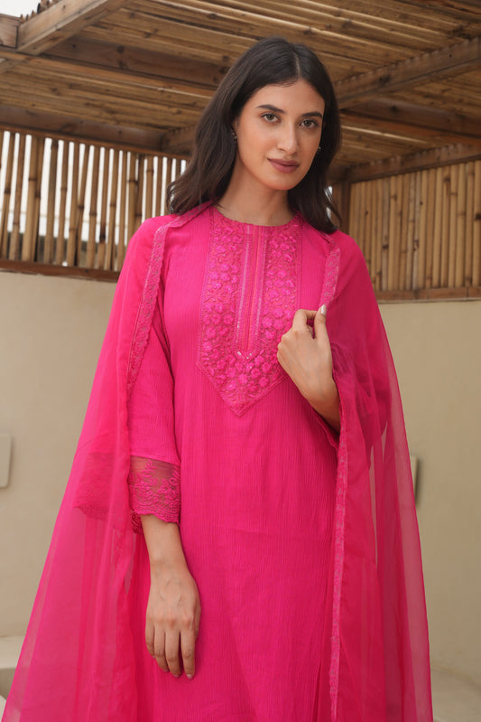 Sold outChaand Pink Chanderi Zari Suit Set