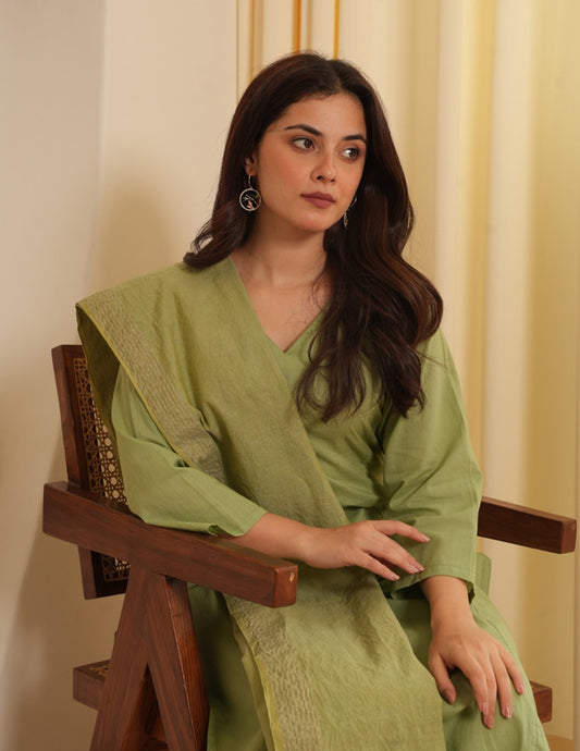 Sage Olive Schiffli Straight Suit Set