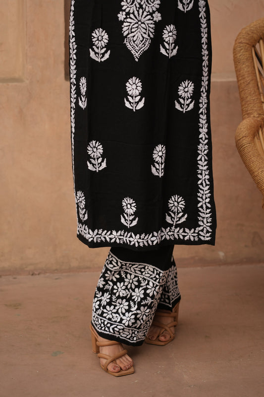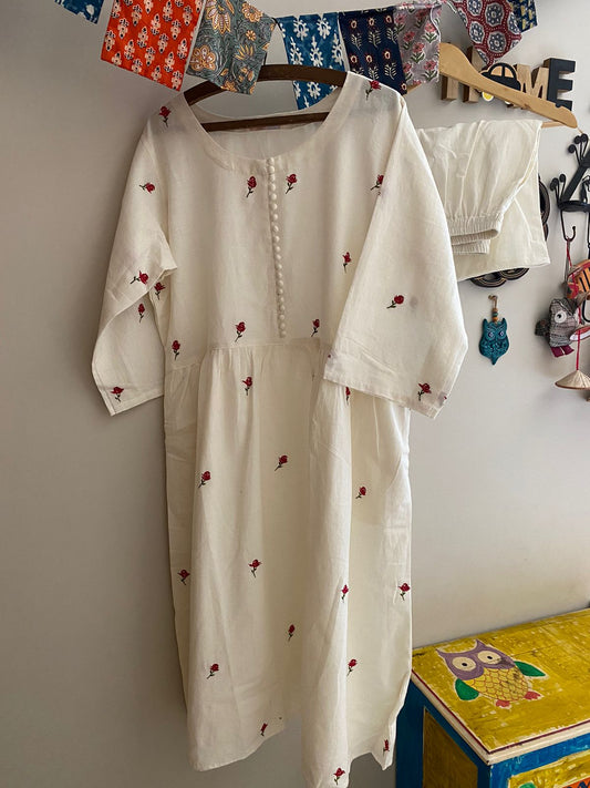 Hara Mohabbat - Pintuck Flared Kurta with Floral Block Print Pants