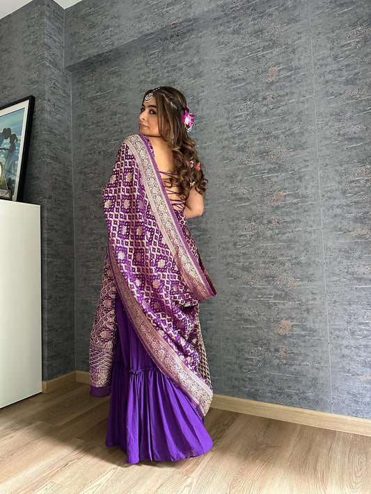 Meera Banarasi Silk Brocade Gharara Set - Pink