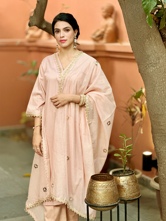 Isha Pearl Suit Set with Hand-embroidered Dupatta