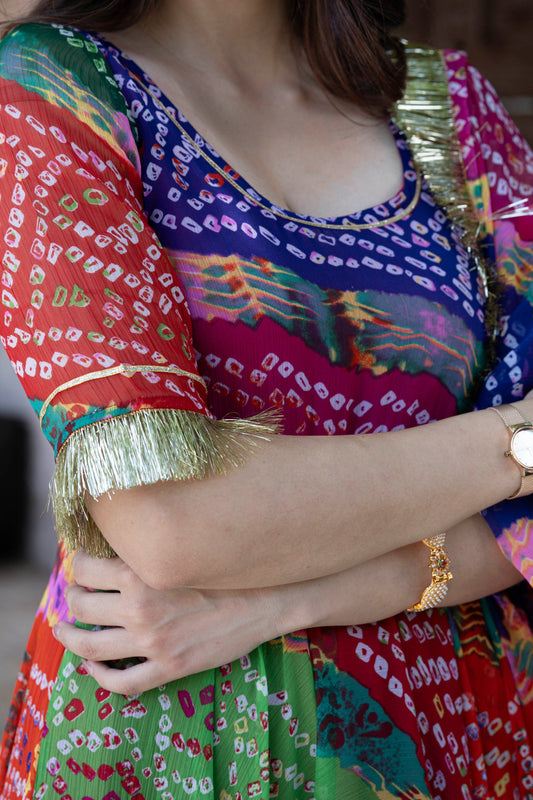 Rajasthani Color Cluster Pure Chiffon Suit Set