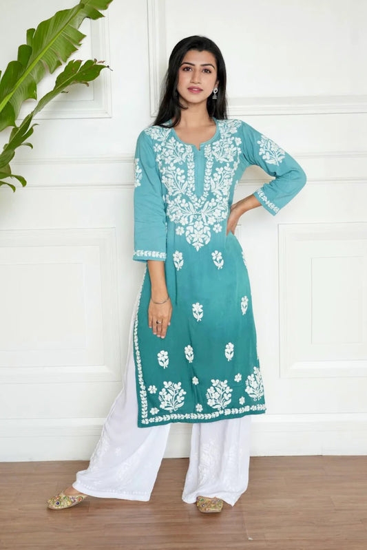 Aaifa Mul Parrot Green Hand Embroidered Kurta