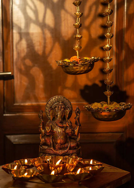 Brass Colored Diya - Set of 4