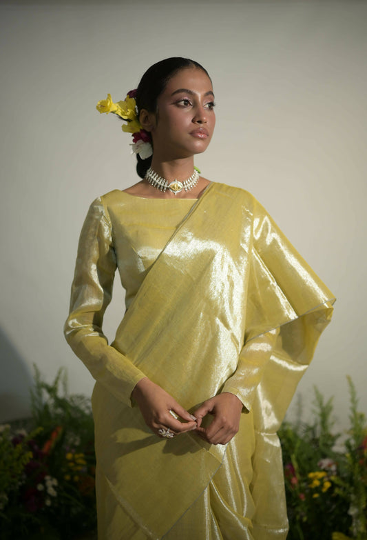 Buttercup Spice Neon Olive Handloom Tissue Saree
