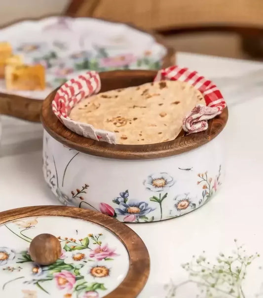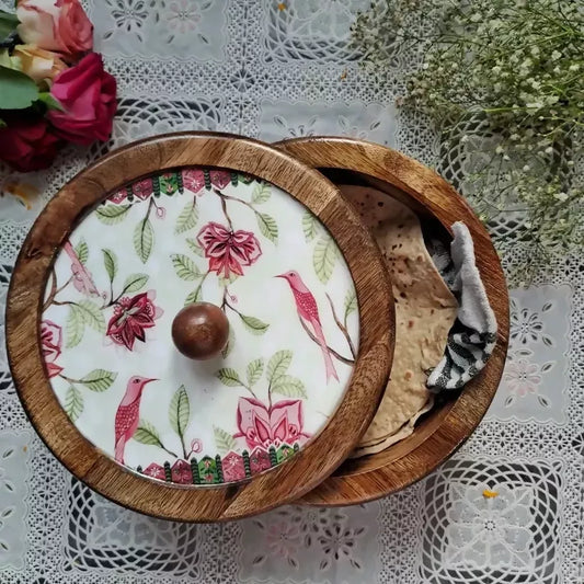 Phool Bahar Mango Wood Handcrafted Roti Box