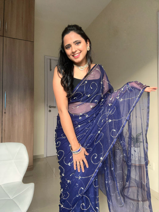 Banno Tera Swagger -Jaal Embroidery Pre-Pleated Shimmer Chiffon Saree