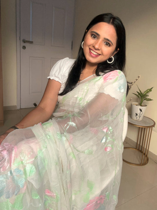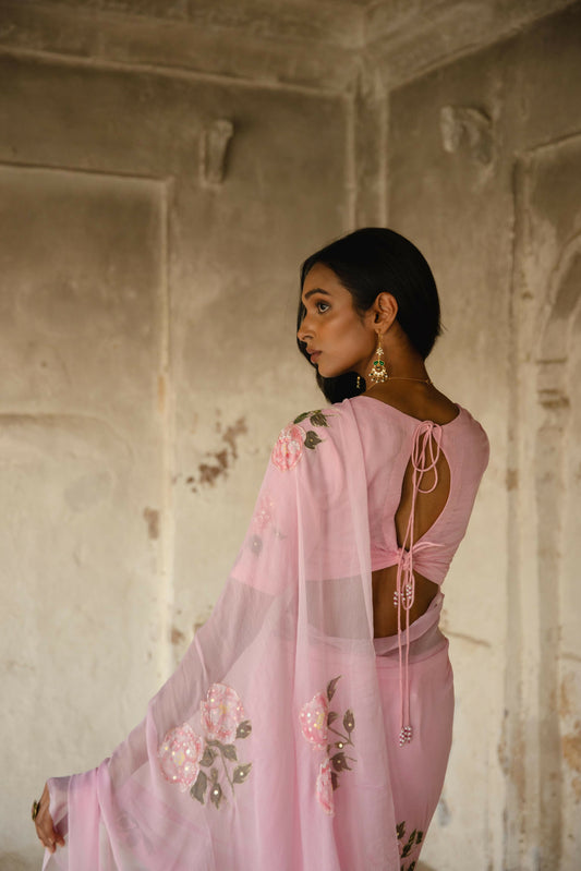 Gulabo - Handpainted Ready To Wear Chiffon Saree