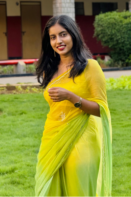 Rani Ombre Shades of Pink Pre Pleated Chiffon Saree