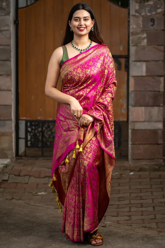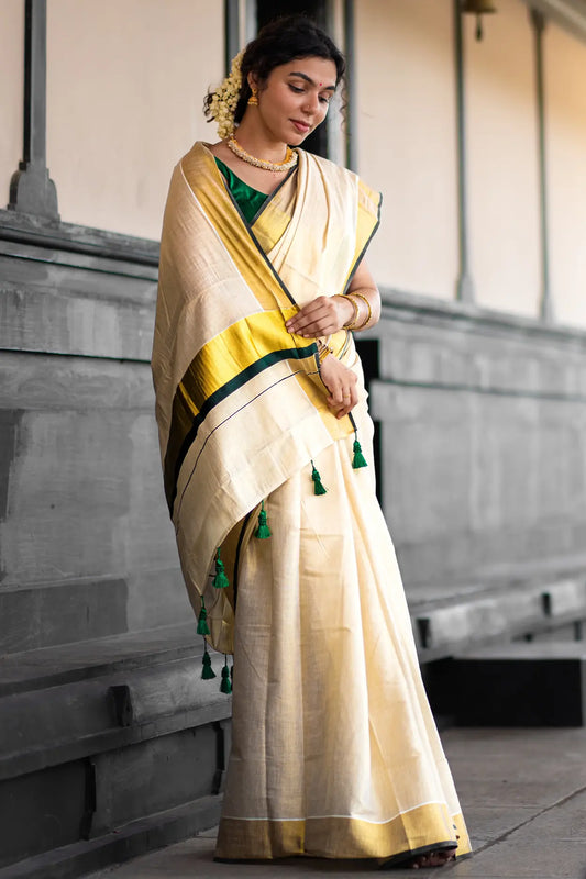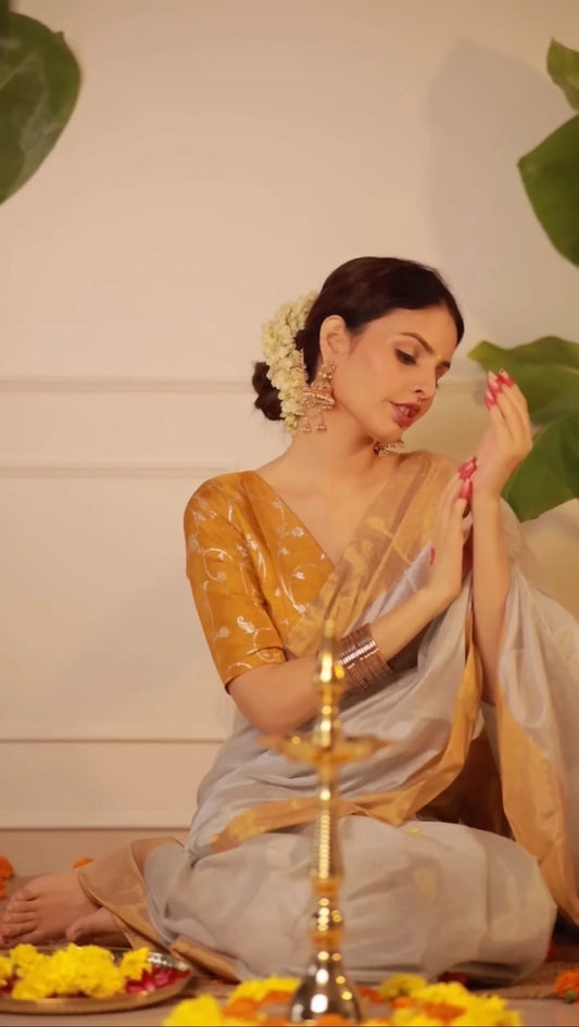 Buttercup Spice Neon Olive Handloom Tissue Saree