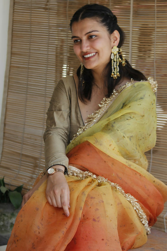 Natural Flower Dyed Ombre Organza Silk Saree with Gota Border
