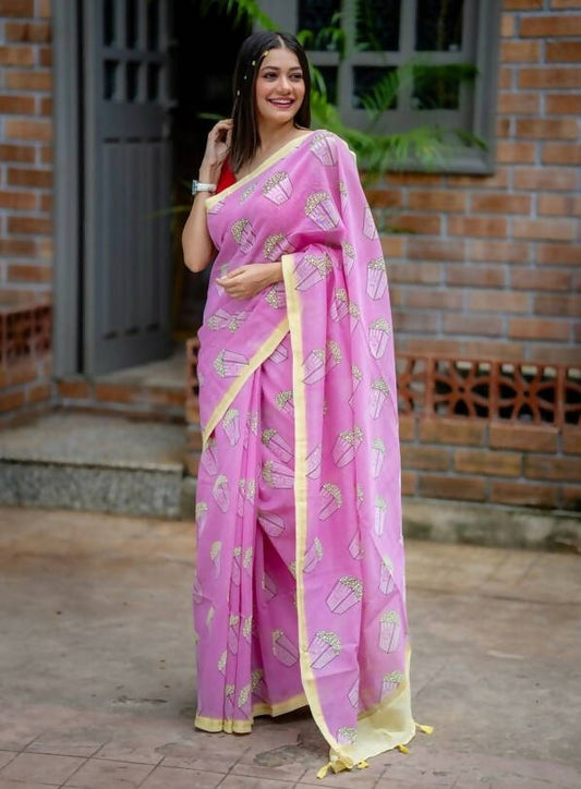 Barbie Girl – Popcorn Screen Print on Chanderi Saree
