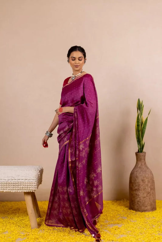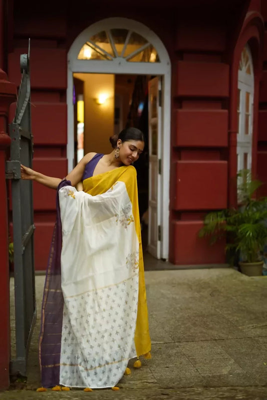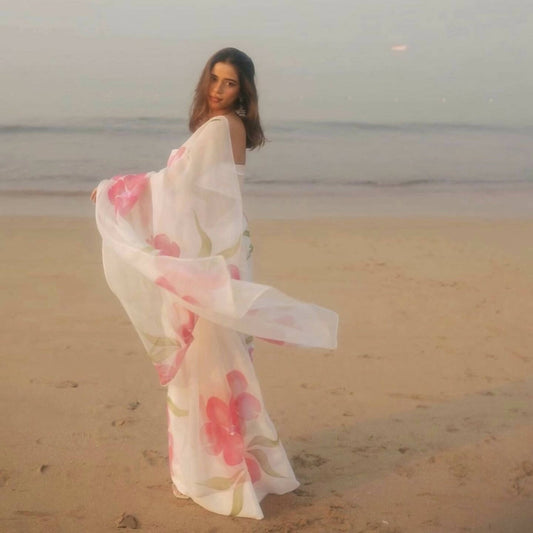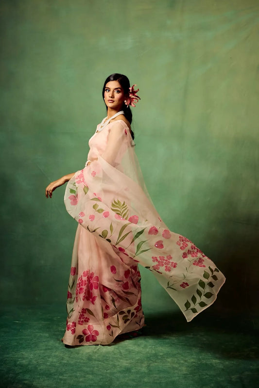 Blush Jellyfish Elegance - Mul Cotton Saree