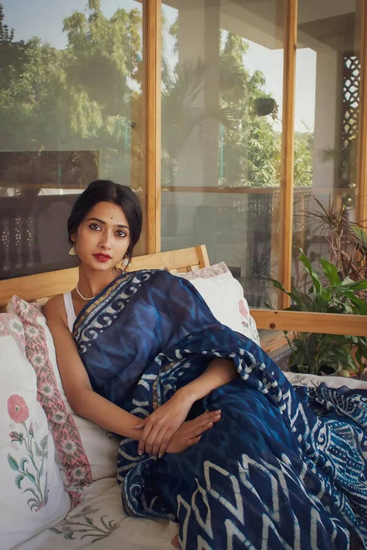Heer - Indigo Dabu Hand Block Print Chanderi Silk Saree