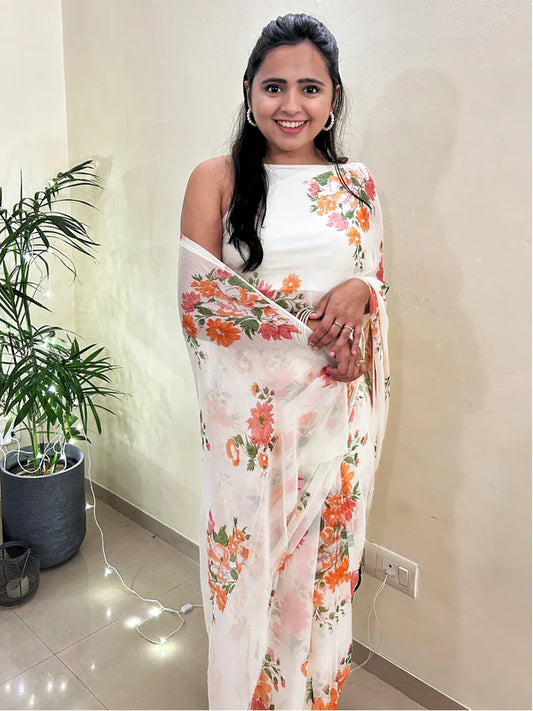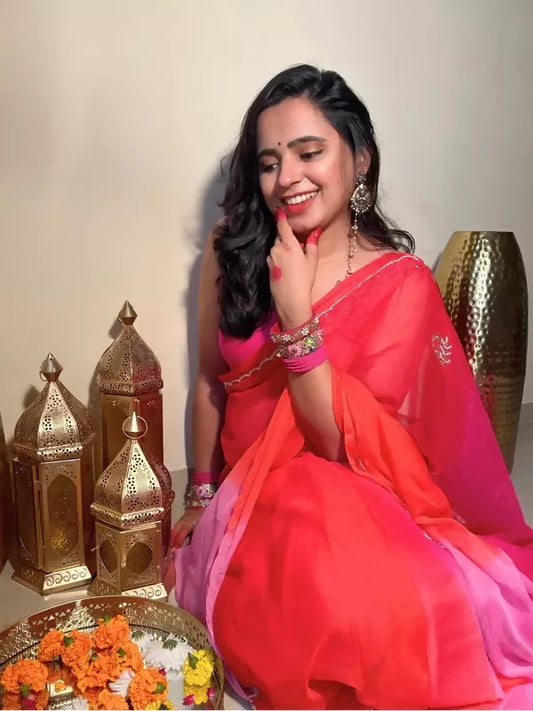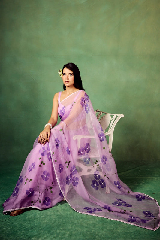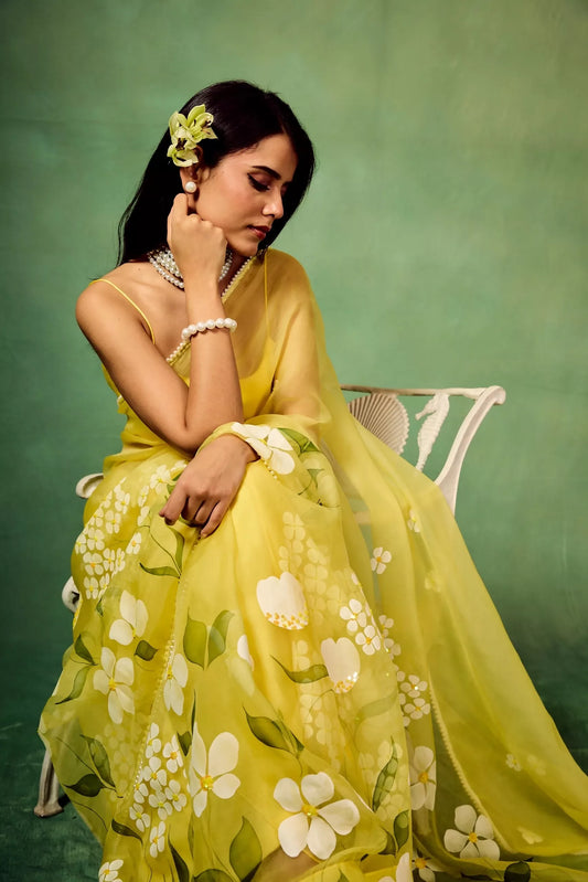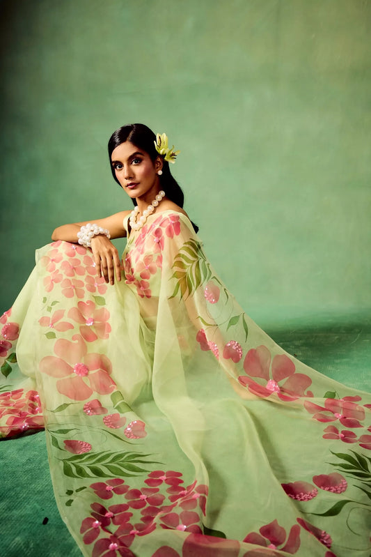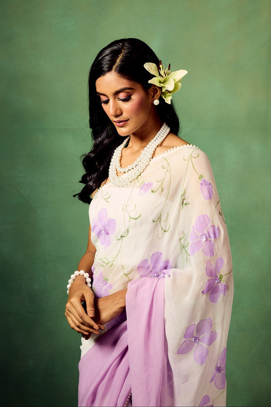 Mrunal - Hand Painted Pre-Pleated Chiffon Saree