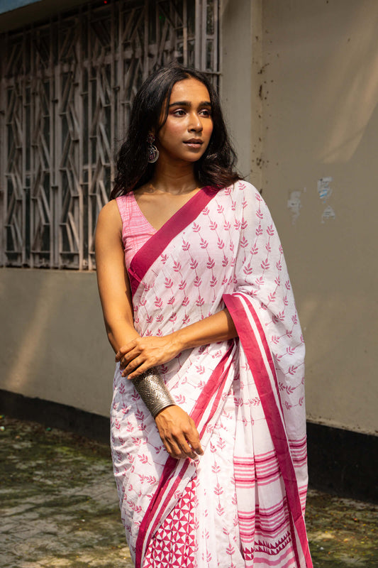 Pink Alley - Mul Cotton Hand Block Printed Saree