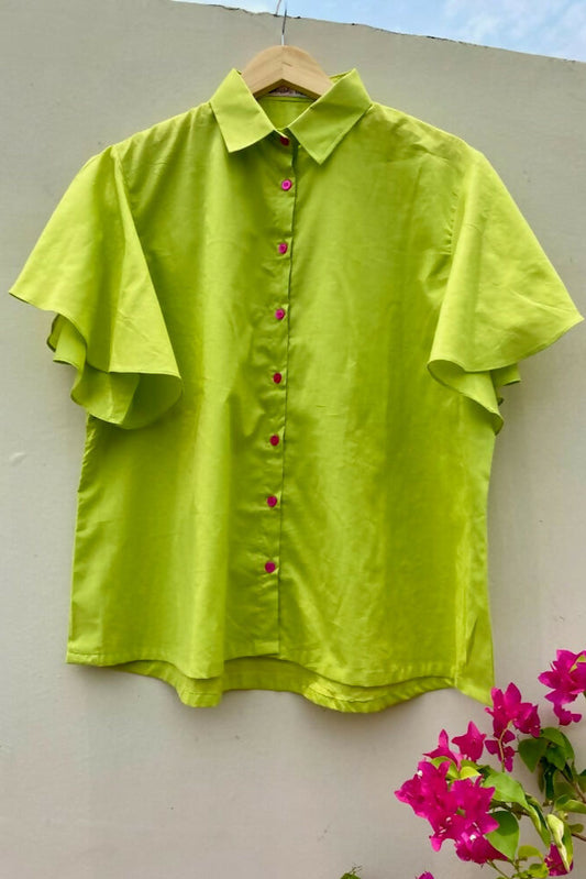Mint Cotton Front Button Shirt