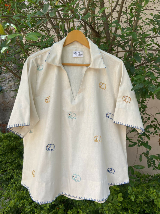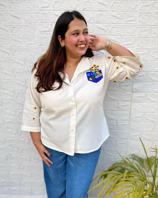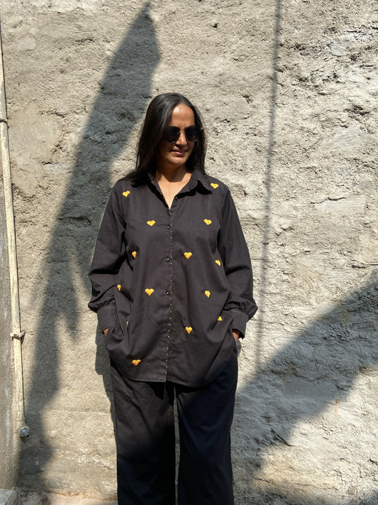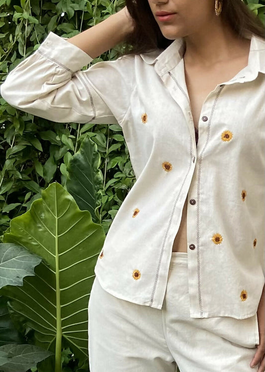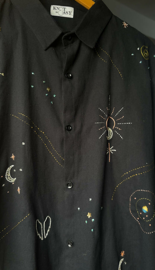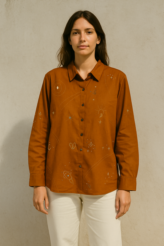 Rust Celestial Hand-Embroidered Cotton Shirt