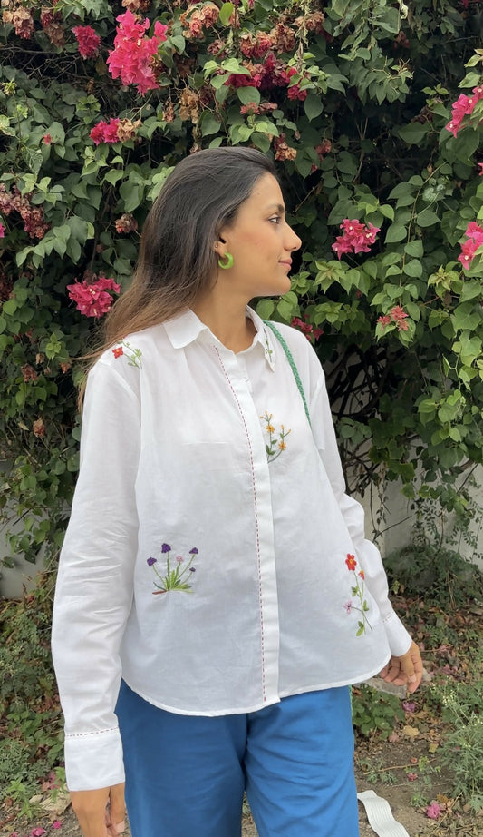 Sheer Green Hand-Embroidered Kota Doria Shirt