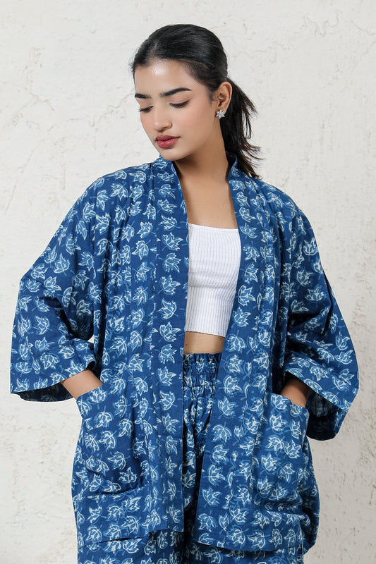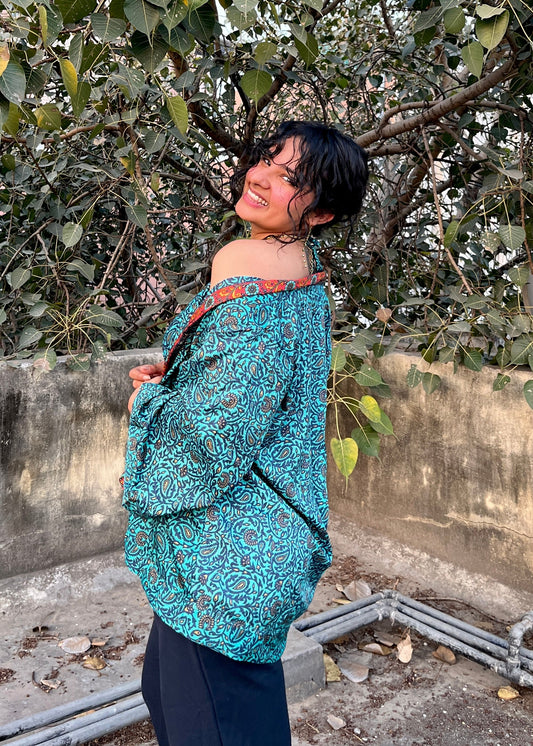 • Kimono & Halter Neck Top Set (2 Piece) - Teal