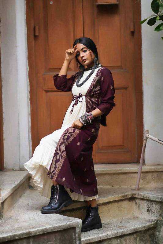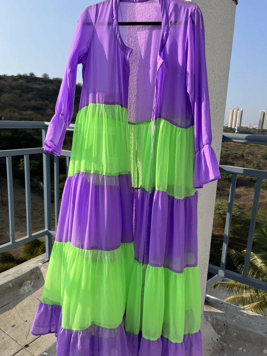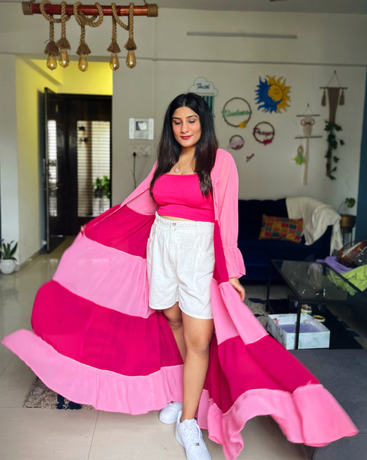 • Kimono, Halter Neck Top and Skort (3 pc Set) - Aabha