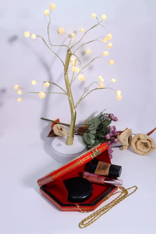 Kashmiri Trapezoid Red Papier Mache Handmade Bag