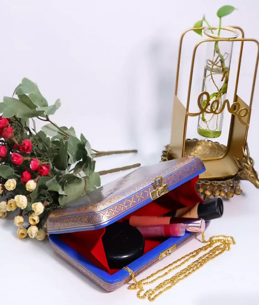 Kashmiri Blue & Purple Papier Mache Handmade Bag