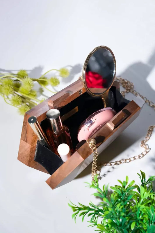 The Royals Asymmetric Acacia Wood Geometric Bag