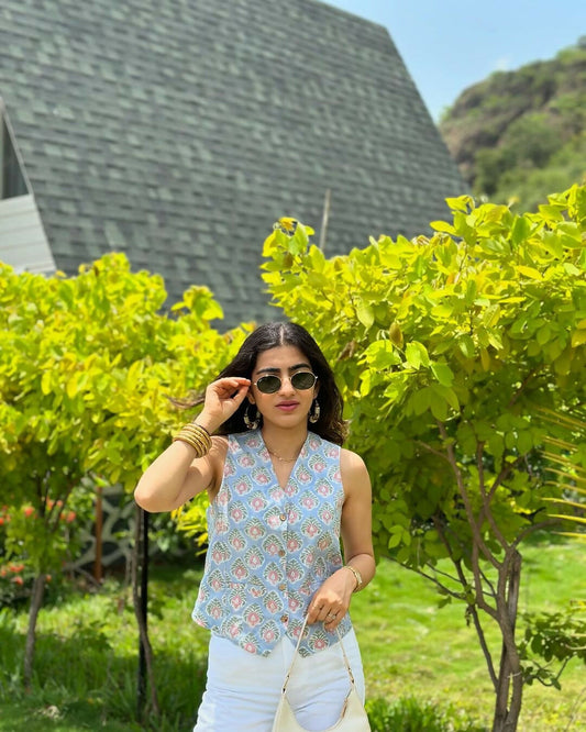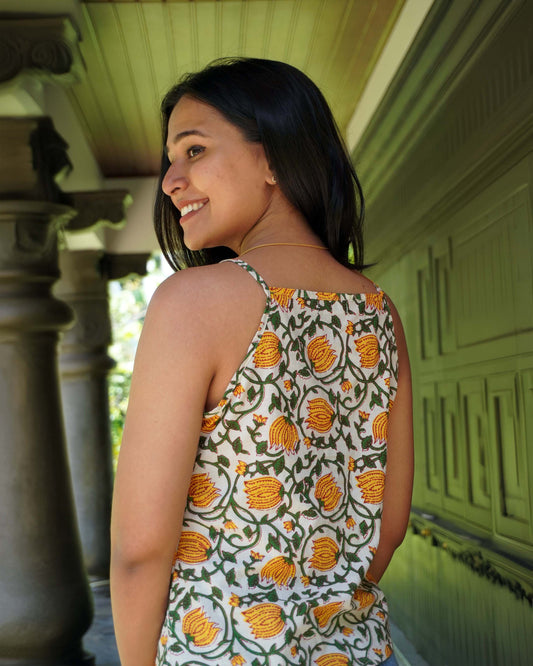 Pastel Green Floral Scarf Top Crafted from Cotton Fabric