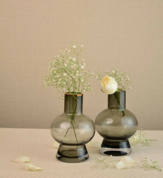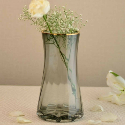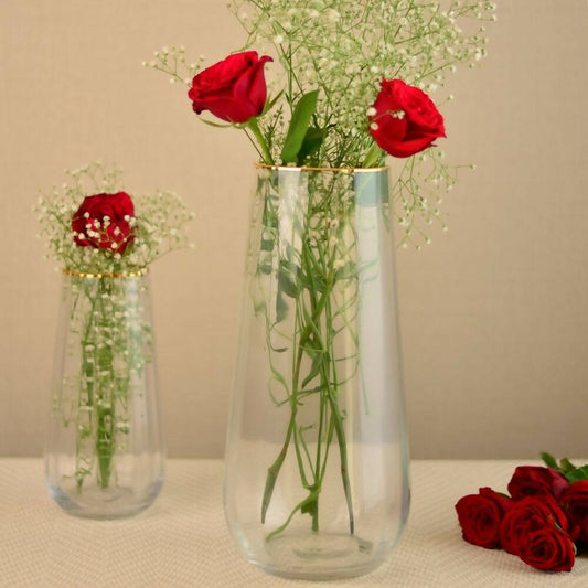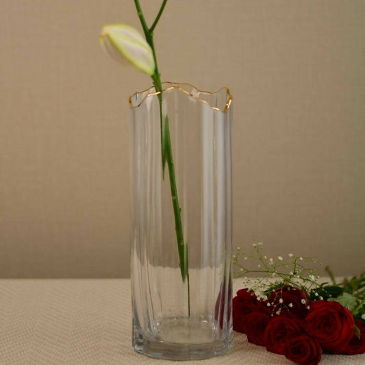 Elate Abstract Glass Vase with Gold Rim | Clear