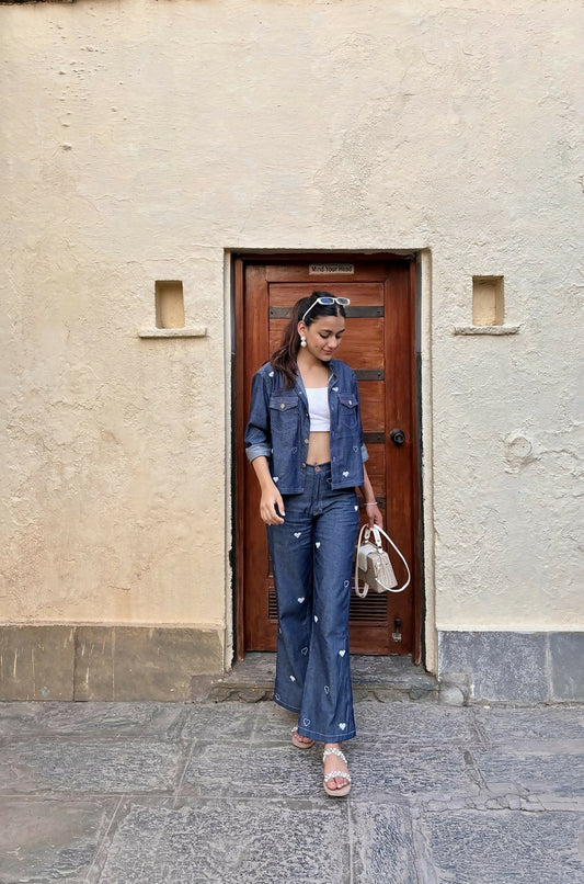 Little Hearts Embroidered Denim Pants