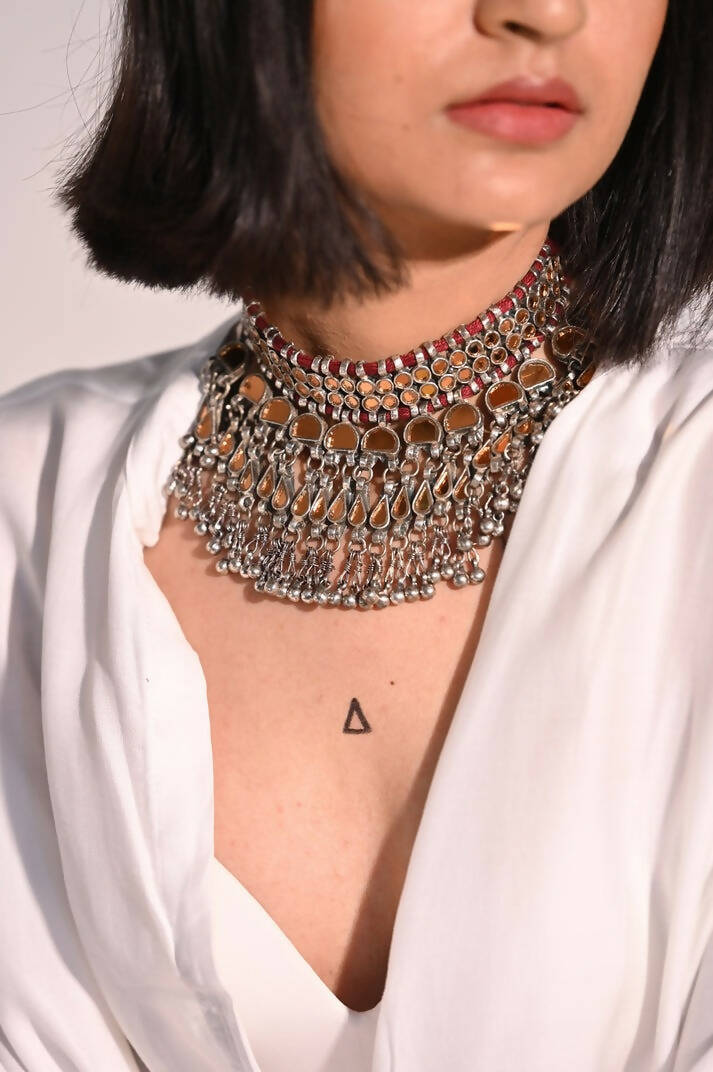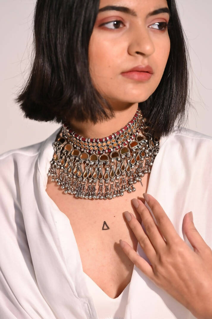 Choker in gold. Since its handmade there are few irregularities in this piece which ads to its beauty.