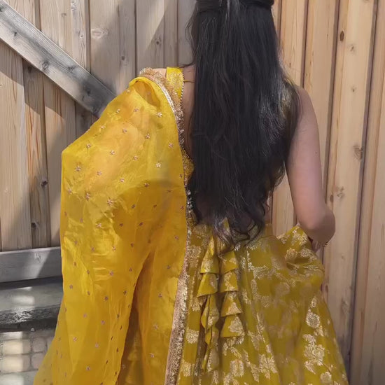 Immerse yourself in a world of exquisite elegance with our captivating Dola silk lehenga. Crafted from the finest threads of Dola silk, this ensemble is a masterpiece of Indian craftsmanship, designed to make you feel like royalty on any special occasion.