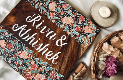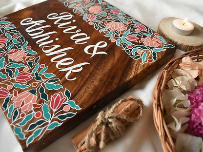 100% hand painted and hand crafted nameplate, made from sheesham wood. The design glorifies the patterns and vibrant colours of India.