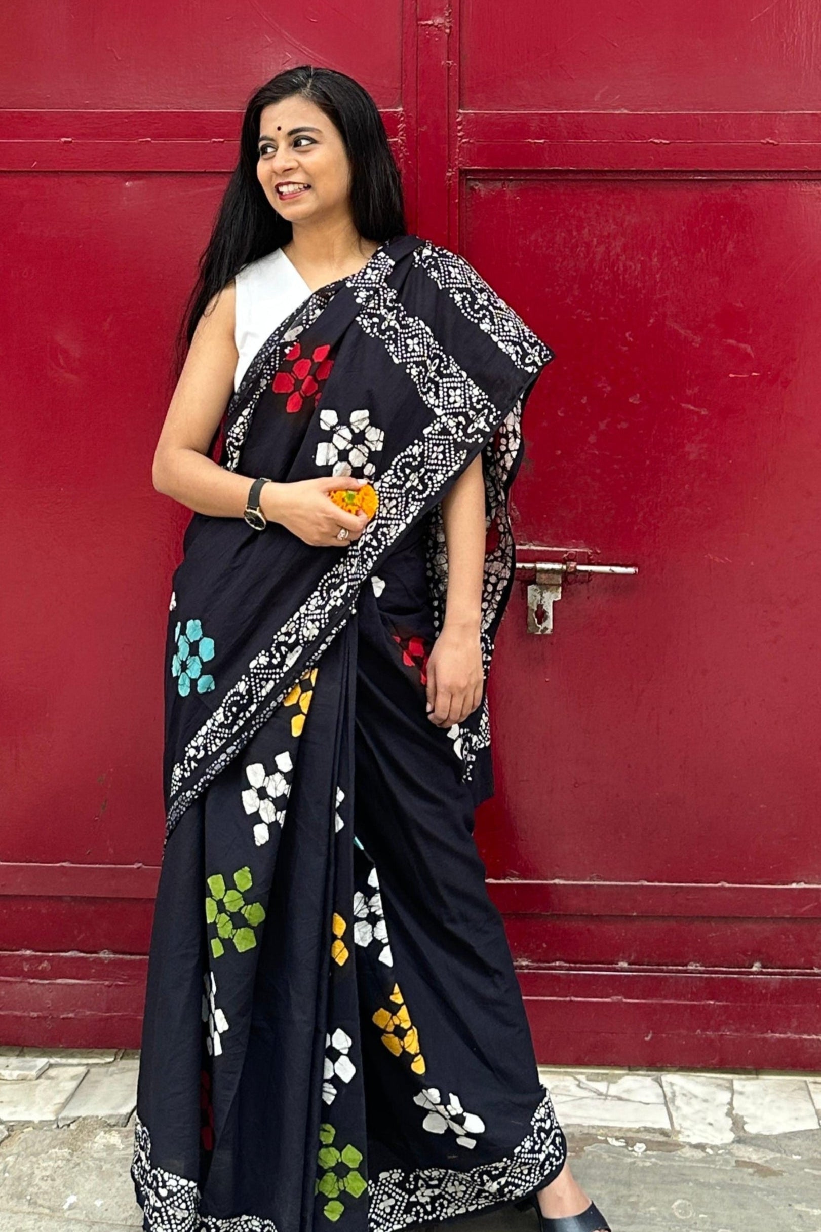 Make a bold fashion statement this summer with the Black Be My Mystery Handblock Print Saree. Designed for the sassy summers, this saree blends traditional craftsmanship with contemporary elegance. Its breathable fabric ensures all-day comfort, while the handcrafted block prints add an artistic flair. Perfect for casual outings, festive evenings, or classy daywear, this saree is a must-have for the modern woman who loves to stand out.
