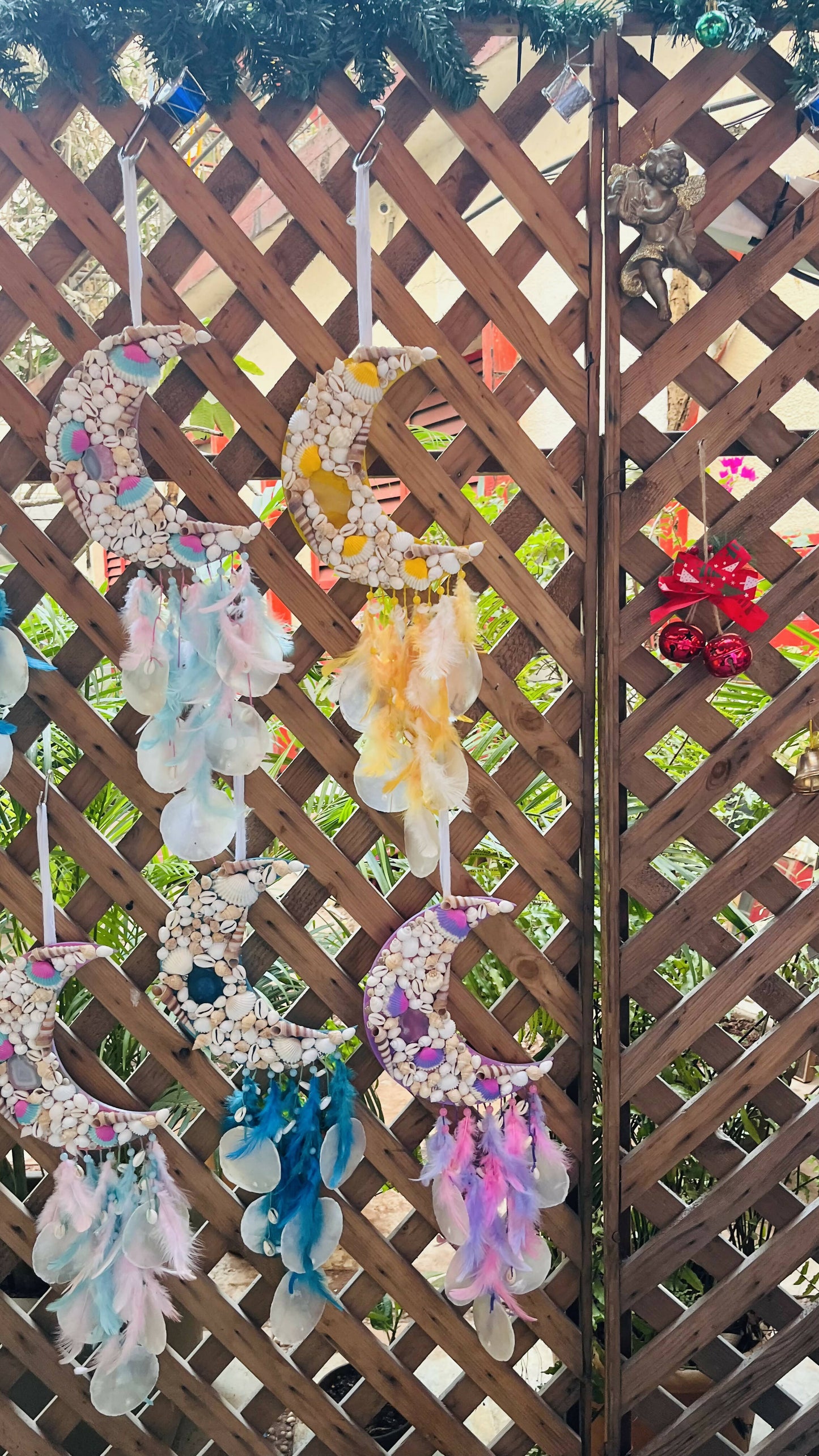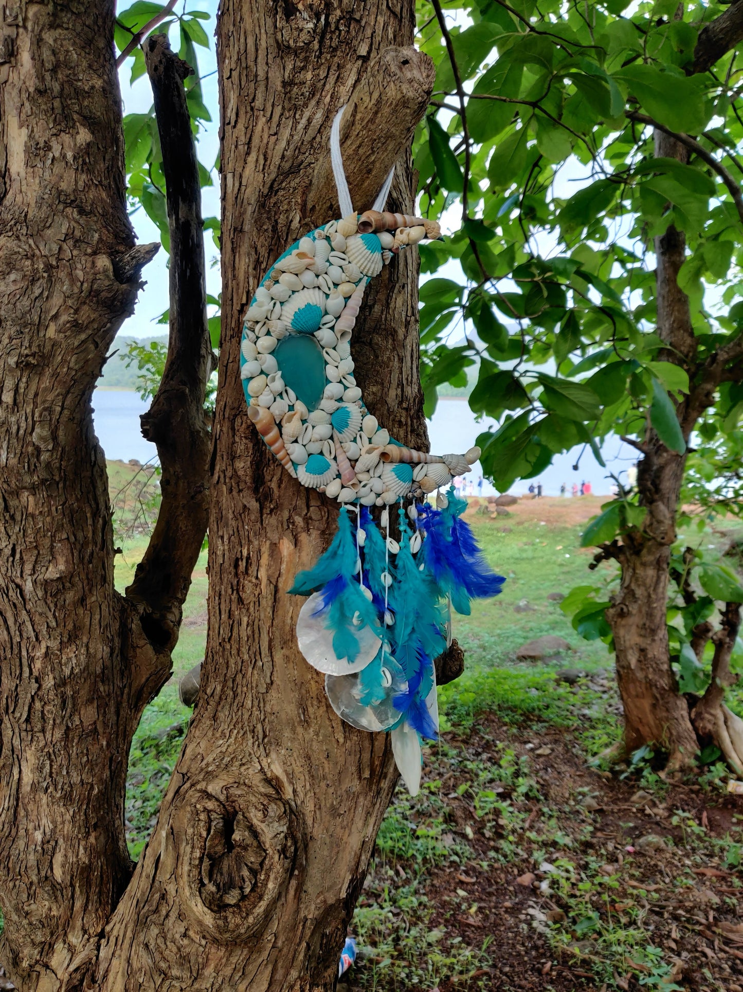 Our Moon Dreamcatcher comes with beautiful sea shells and a calming sound that will instantly lift up your space. Handcrafted by women artisans in Bombay.