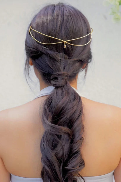 Crown for a modern-day queen. This wavy beaded accessory creates a delicate crown-like effect, especially when styled with loose waves. It’s delicate, whimsical, and a real show-stopper.