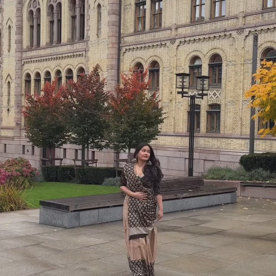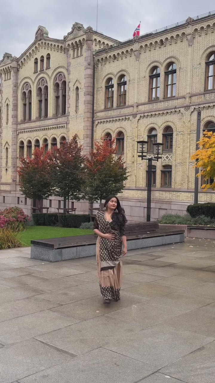 The Coffee and Cocoa Handblock Print Natural Dyed Mulmul Cotton Saree is a perfect fusion of comfort, tradition, and earthy elegance. Crafted from soft and breathable mulmul cotton, this saree is naturally dyed, ensuring a sustainable and skin-friendly wear. Its intricate handblock prints in rich coffee and cocoa tones reflect timeless craftsmanship, making it an ideal choice for those who appreciate artisanal fashion.