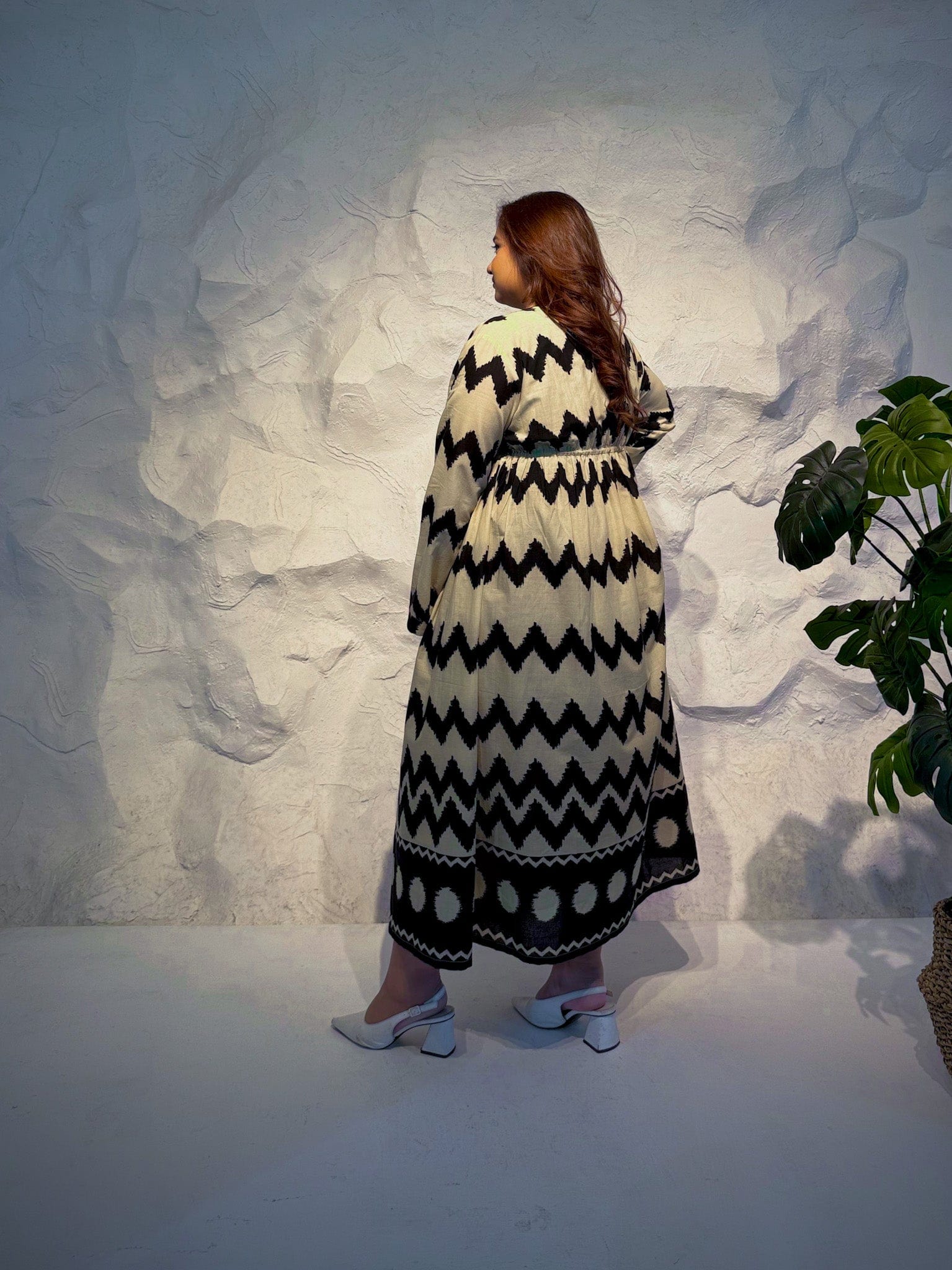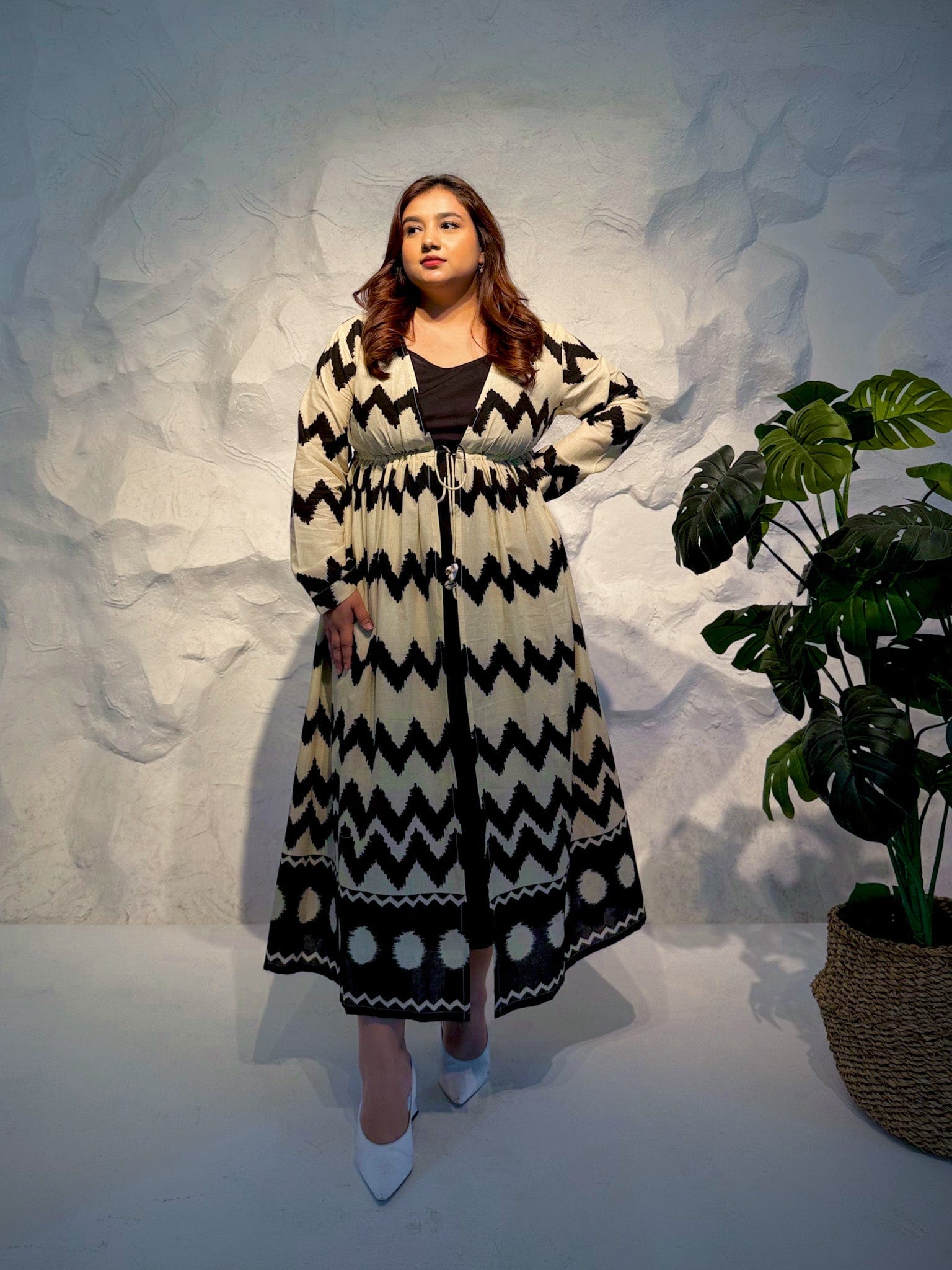 A versatile two-piece set featuring a sleek sleeveless base dress paired with a lightweight printed overlay. The overlay is designed with a drawstring and self-tie detail, allowing for adjustable styling. Effortlessly chic—perfect for transitional dressing, workwear, or travel.
