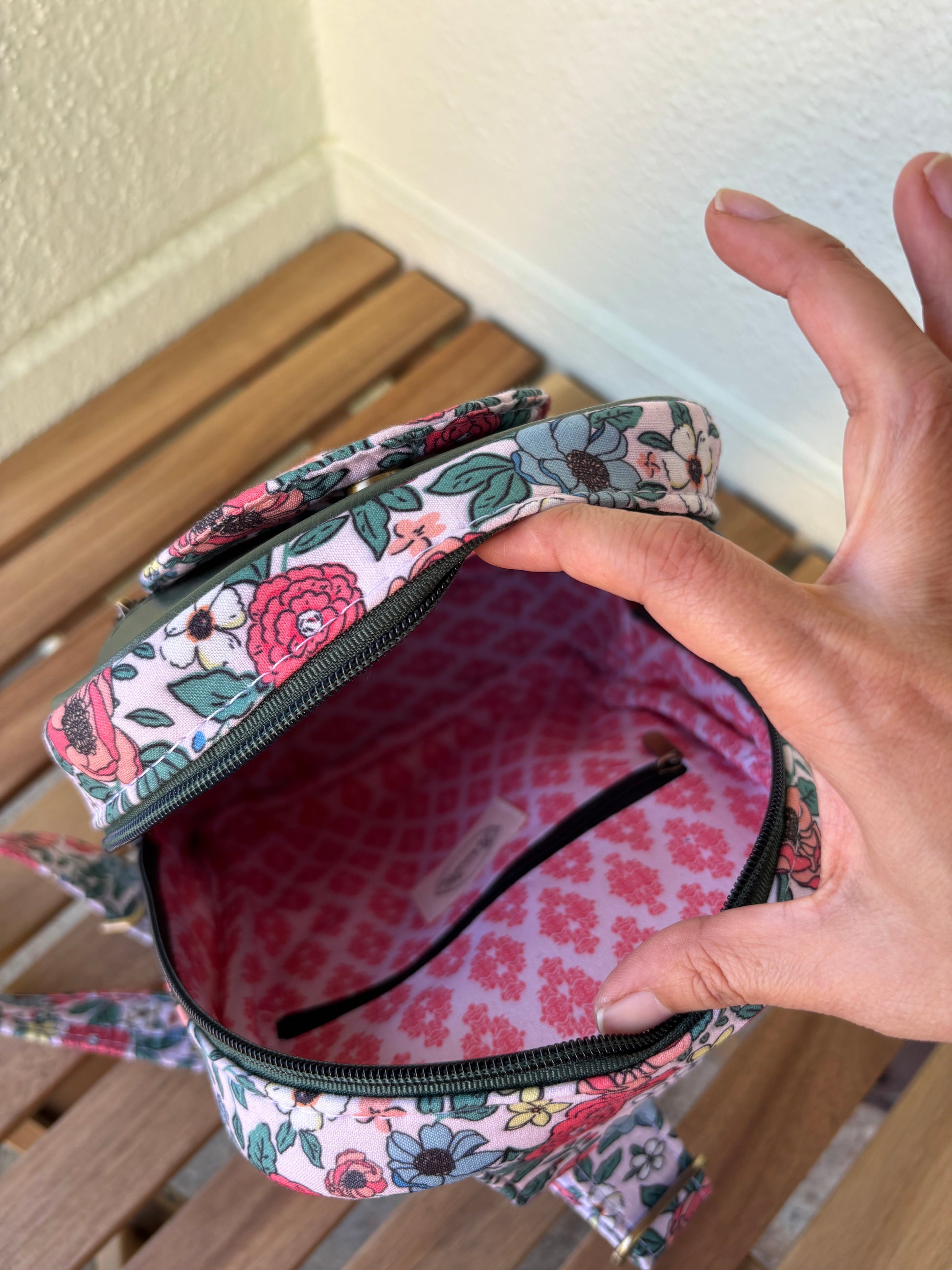 Feminine and functional, the Floral Charm Sling features a soft pink base with delicate roses and wildflowers, paired with deep olive faux leather for an elegant touch. Designed for versatile wear on the chest or back, it offers dual front zip compartments, a spacious main section with organized pockets, and an adjustable strap for all-day comfort.