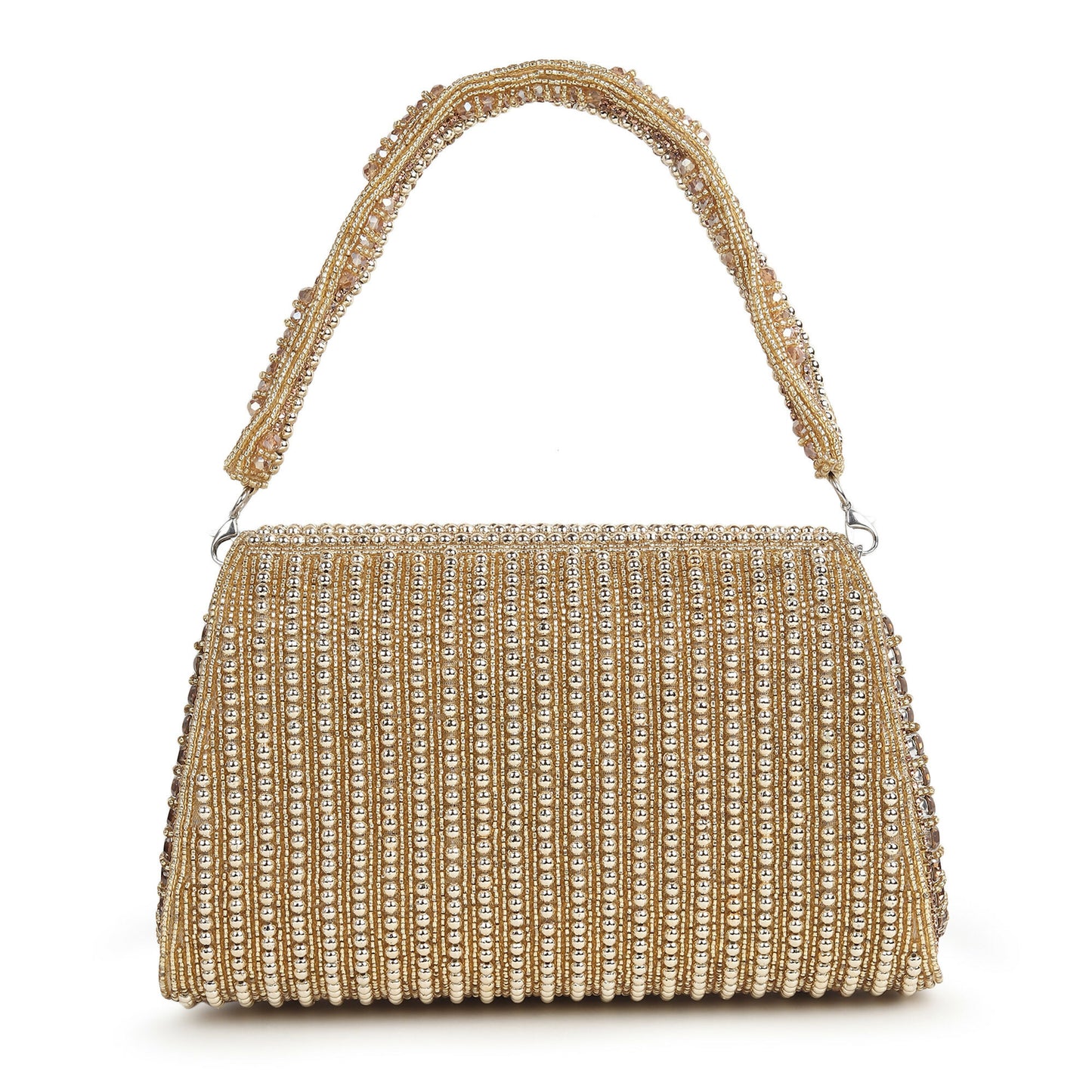 The Gold Rush Flap Bag exudes opulence with its luxurious suede lining, offering a plush feel that speaks to its premium craftsmanship. Adorned with an intricately embroidered handle, it adds a subtle yet striking layer of elegance. This meticulously designed piece blends timeless style with modern sophistication, making it the ultimate accessory for a refined and elevated look.