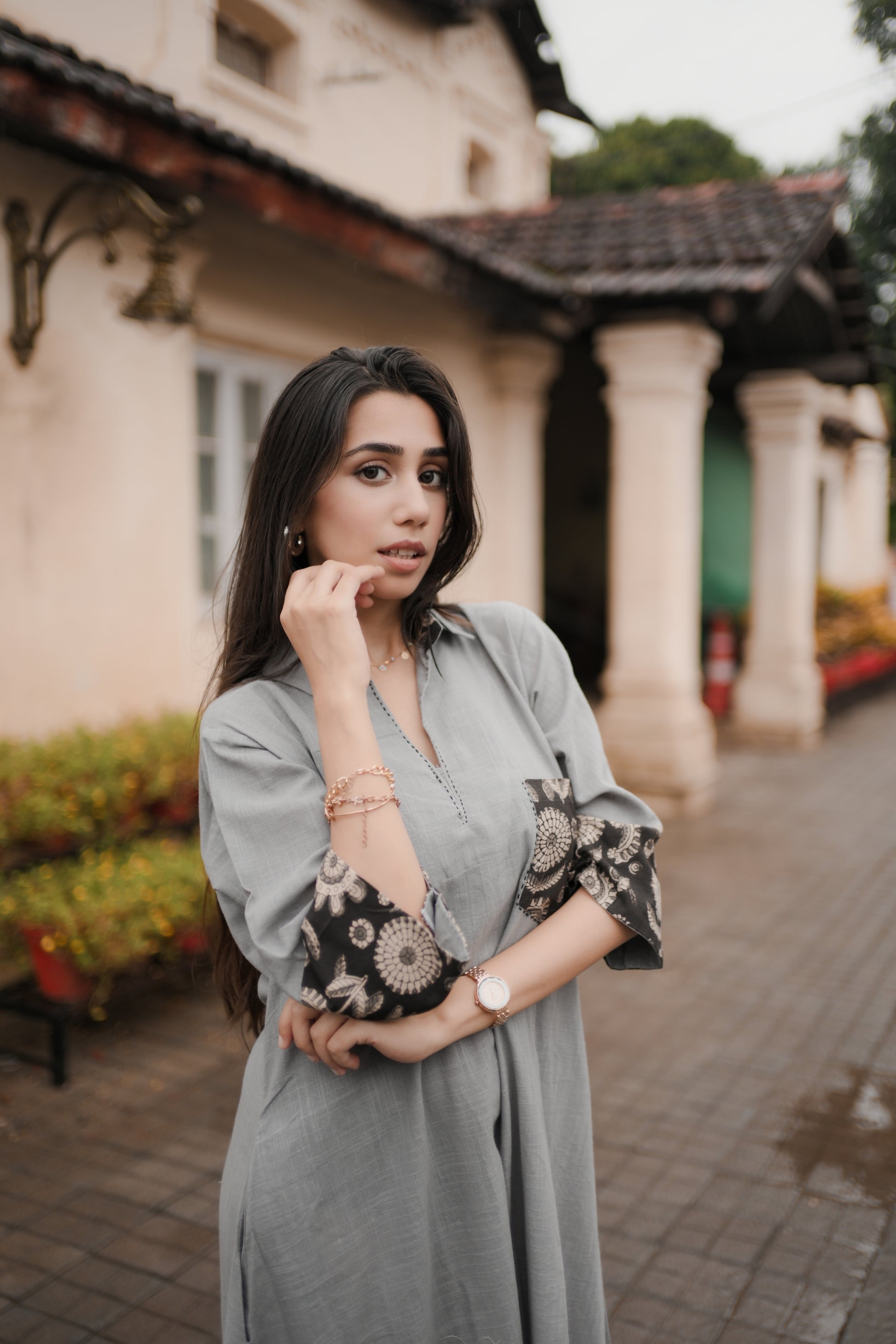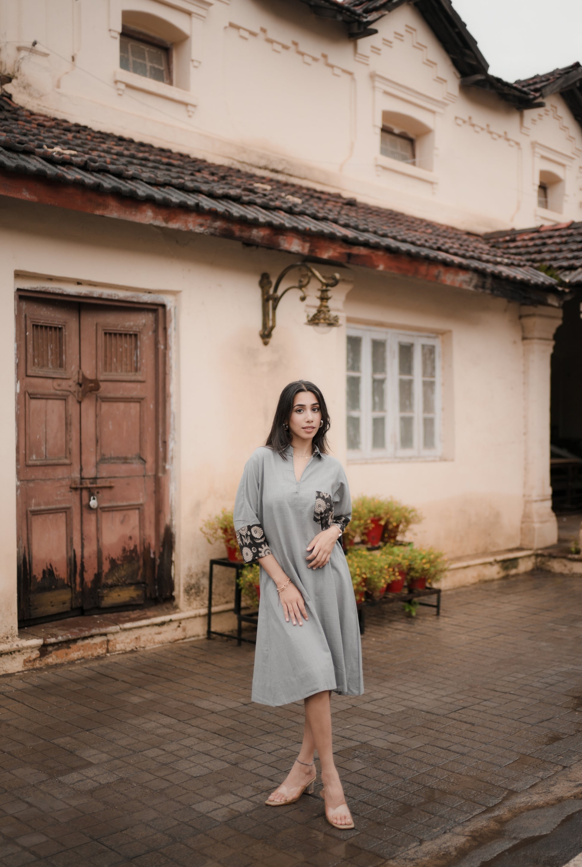 Elevate your everyday style with Grey & Black Collared A-Line Dress—a perfect blend of comfort and sophistication. Made from premium cotton, this dress is soft, breathable, and ideal for all-day wear. The classic shirt collar, contrast hand-block print details, and flowy A-line silhouette make it effortlessly chic. Whether you’re heading to work, brunch, or a casual outing, this dress keeps you stylish and comfortable.