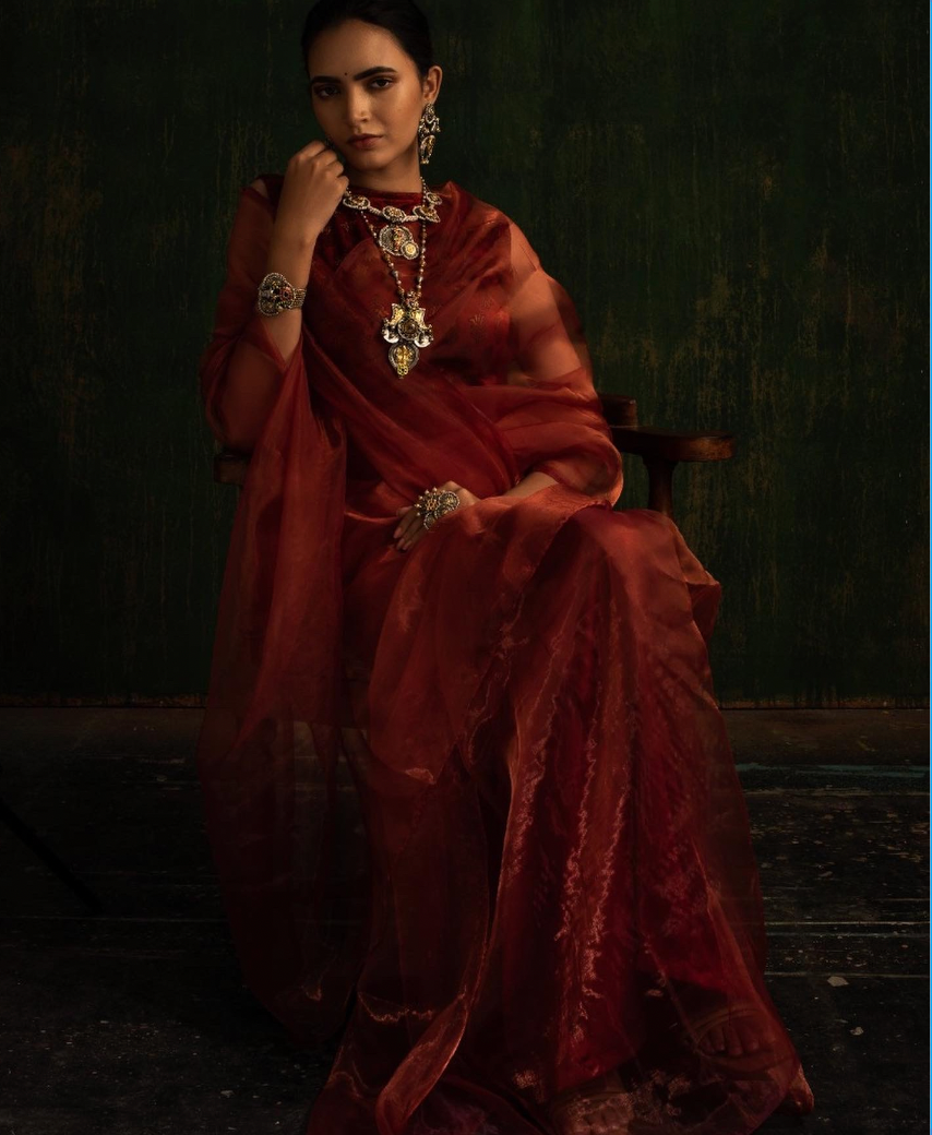 Introducing our Honeywine Organza Saree, a perfect blend of elegance and modernity. This stunning saree features a rich honeywine hue that radiates warmth and sophistication, making it an ideal choice for festive occasions and special events. Crafted from high-quality organza fabric, it is lightweight yet luxurious, allowing for graceful draping that flatters every figure.Whether you're attending a wedding, a family gathering, or a festive celebration, this saree will ensure you stand out with grace and style.