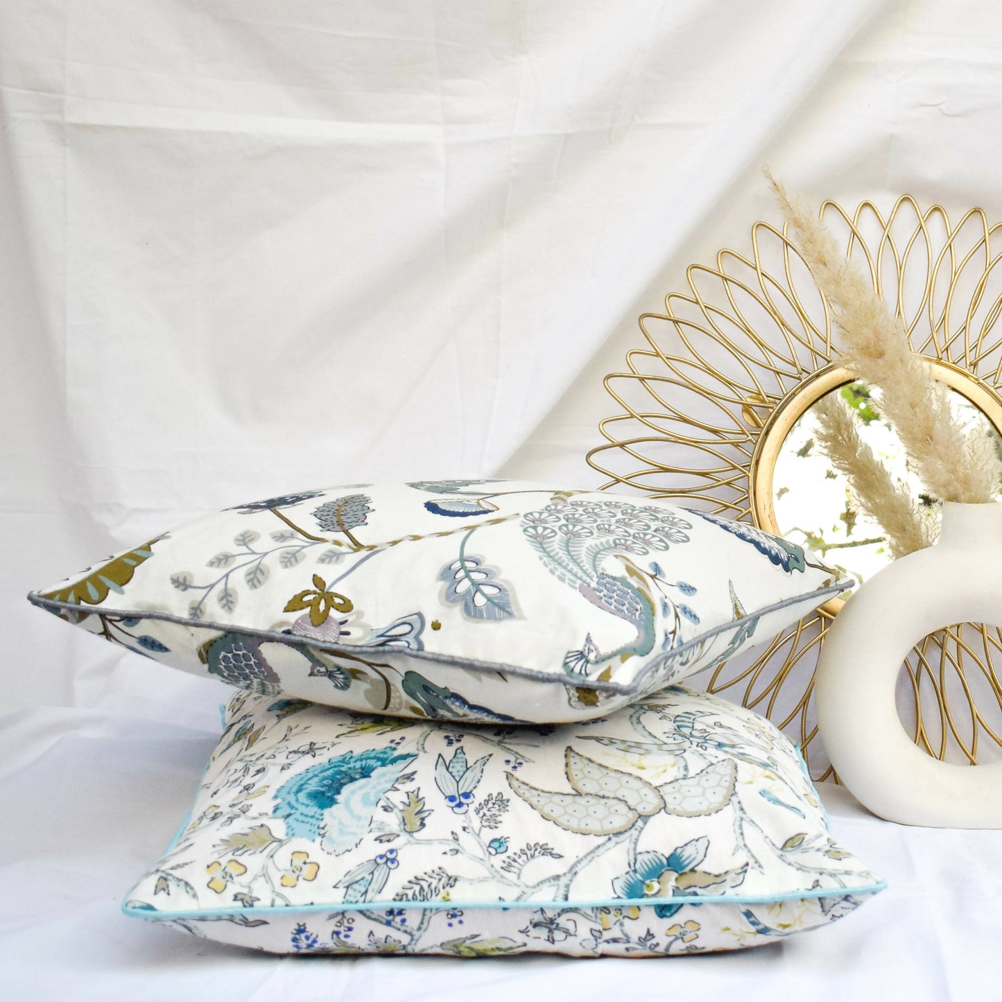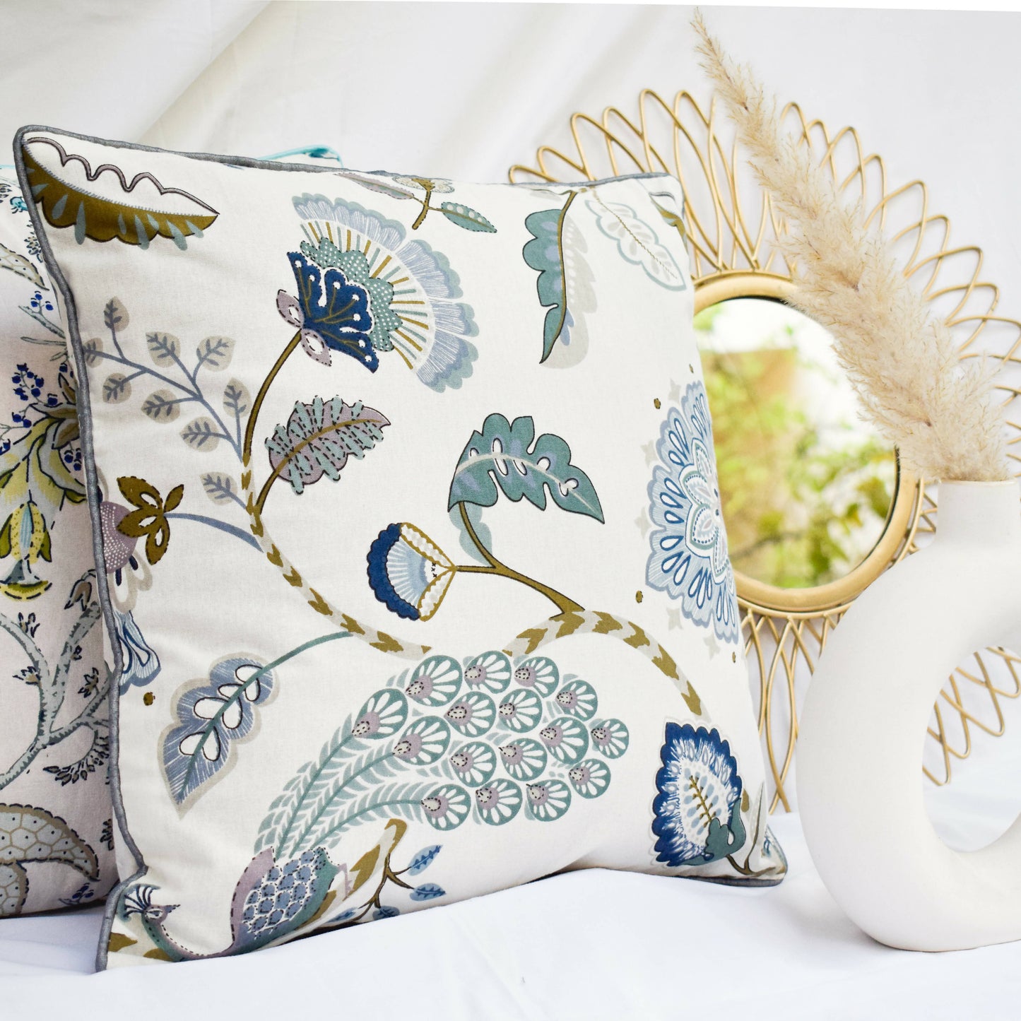 Classic Indigo motifs, this all-over printed cotton cushion cover is the way to go when you feel like giving your space a makeover. Find class, style and sophistication-all at once with this indigo cushion cover set. All Saga products are ethically made with efforts and love- this one in particular is a 100% premium cotton Cushion cover with a polyester back.