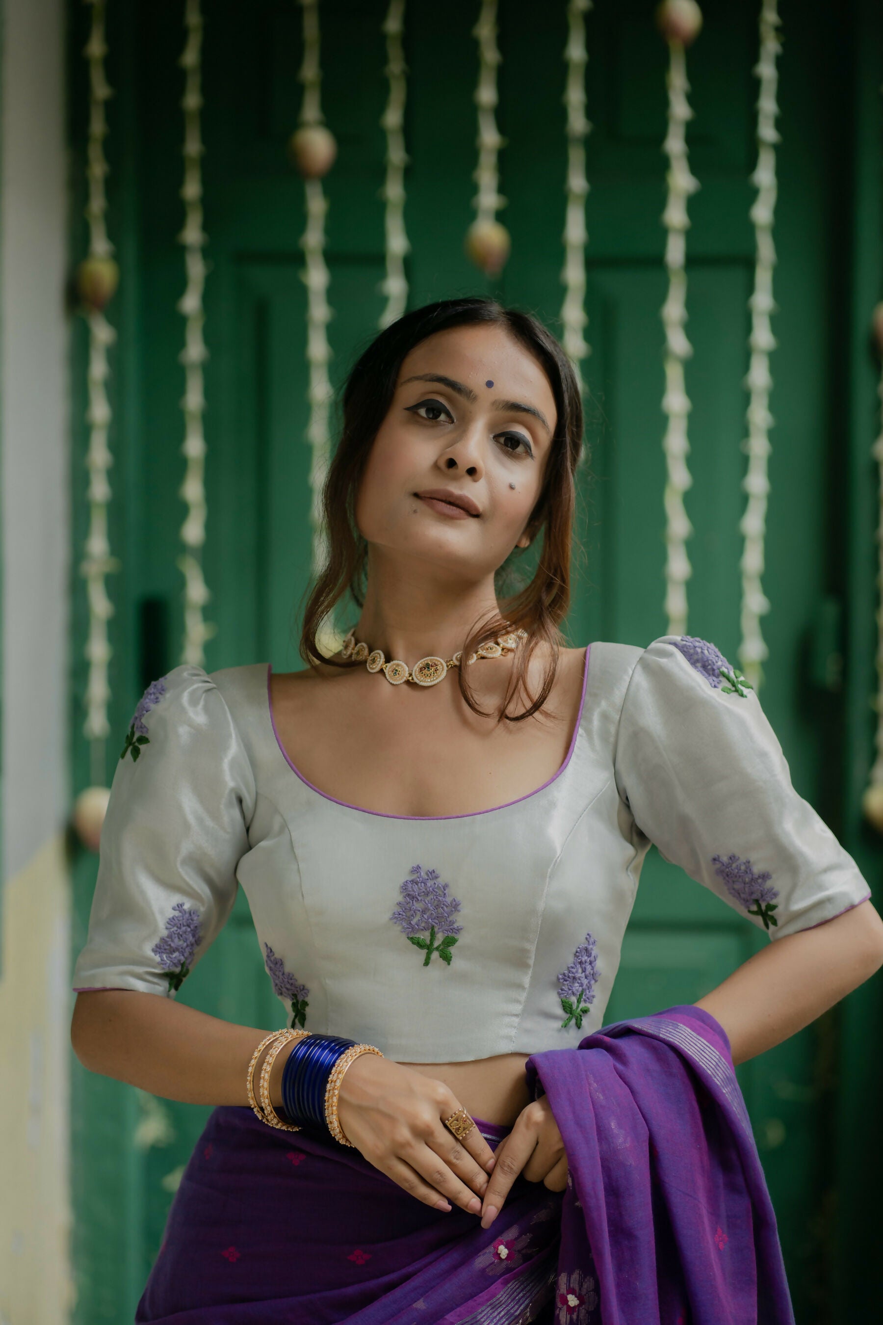 Art silk blouse with a cotton lining for the body, combining a luxurious sheen with comfortable wear.