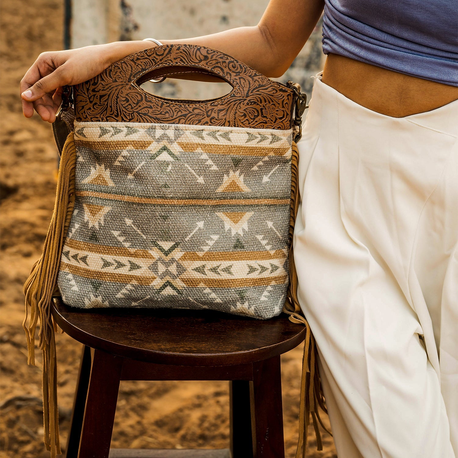 Indulge in timeless elegance with our handcrafted shoulder bag, crafted from sustainable cotton rug, high-quality leather for a luxurious feel and enduring durability. Designed with both style and practicality in mind, this sleek accessory effortlessly complements any outfit while keeping your essentials organized on the go.