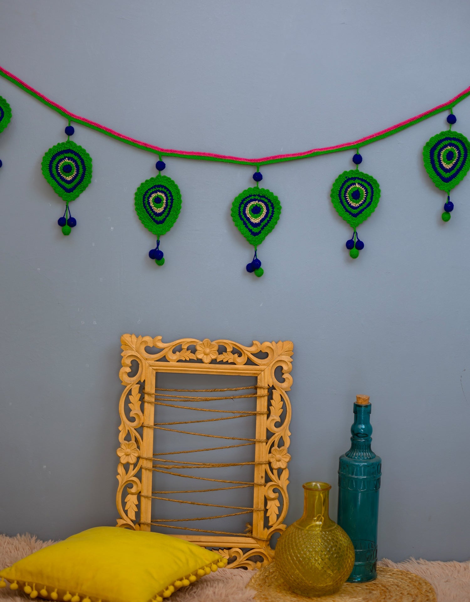 Add a touch of divine elegance to your space with our Handcrafted Morpankh Toran. Made with vibrant peacock feathers and intricate detailing, this stunning décor piece symbolizes prosperity and protection. Perfect for doorways, temples, or festive occasions, it brings tradition, color, and charm into every corner of your home.