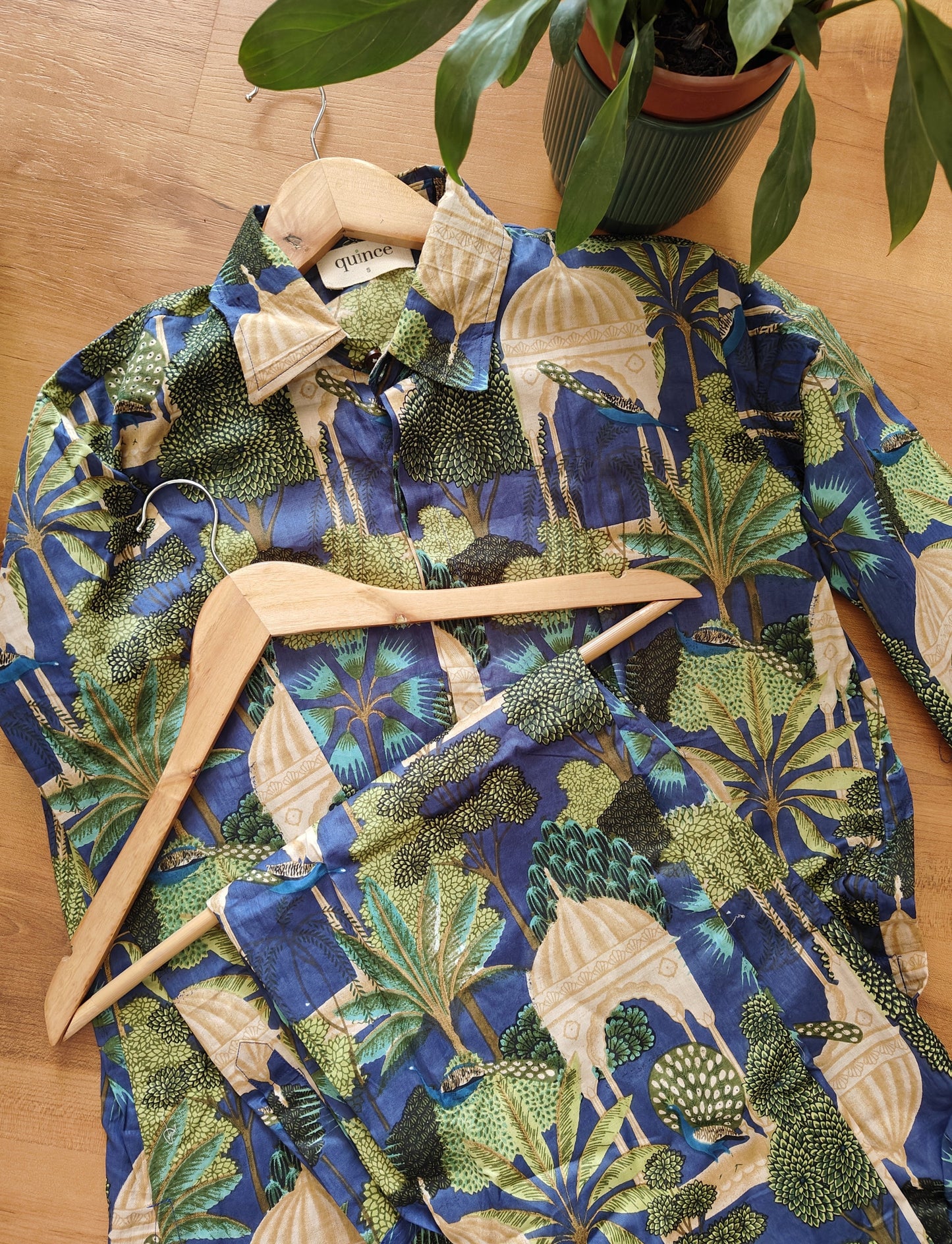 Surrender yourself in the exotic charm of forests, domes and peacocks in our all new mughal garden print coord. This bright and attractive print is sure to be a headturner wherever you go. Wear as a set or use the shirt and pant separately, this one sure can be styled in multiple ways