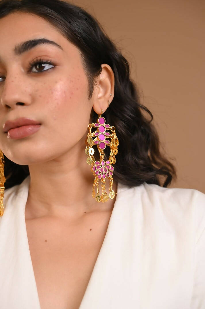 Nadiya earrings bring old world charm to any outfit. Crafted from polished gold, these statement earrings add glitz and glamour without being over the top. They're perfect for the days you want to stand out just a little bit more.